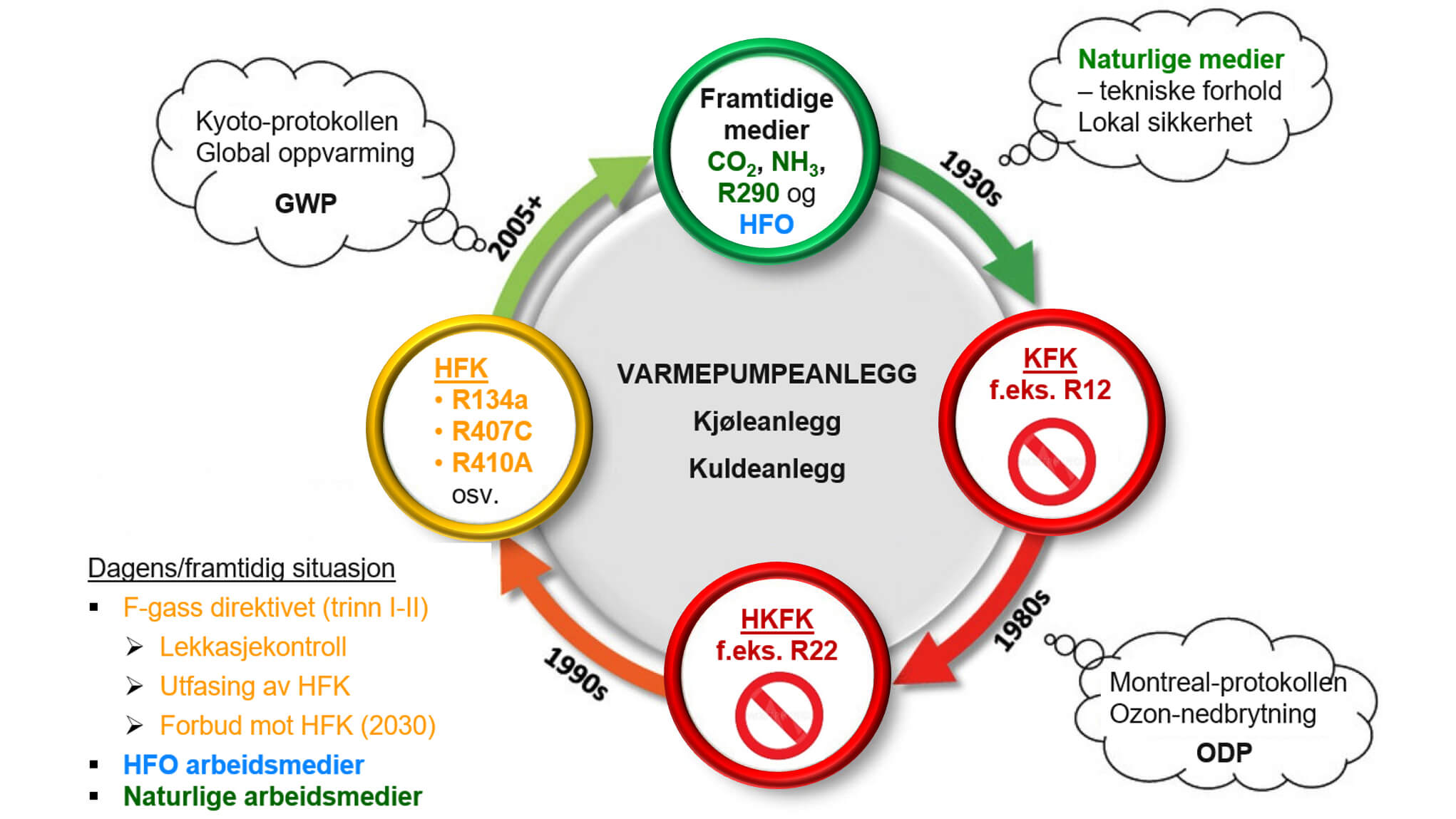 Nå kan du se alle seminarene i opptak. Hvert seminar starter med ca. 10 minutter innledning om de ulike kuldemediene, med Jørn Stene fra COWI, dr. ing og spesialist på varmepumper og kjøleanlegg.