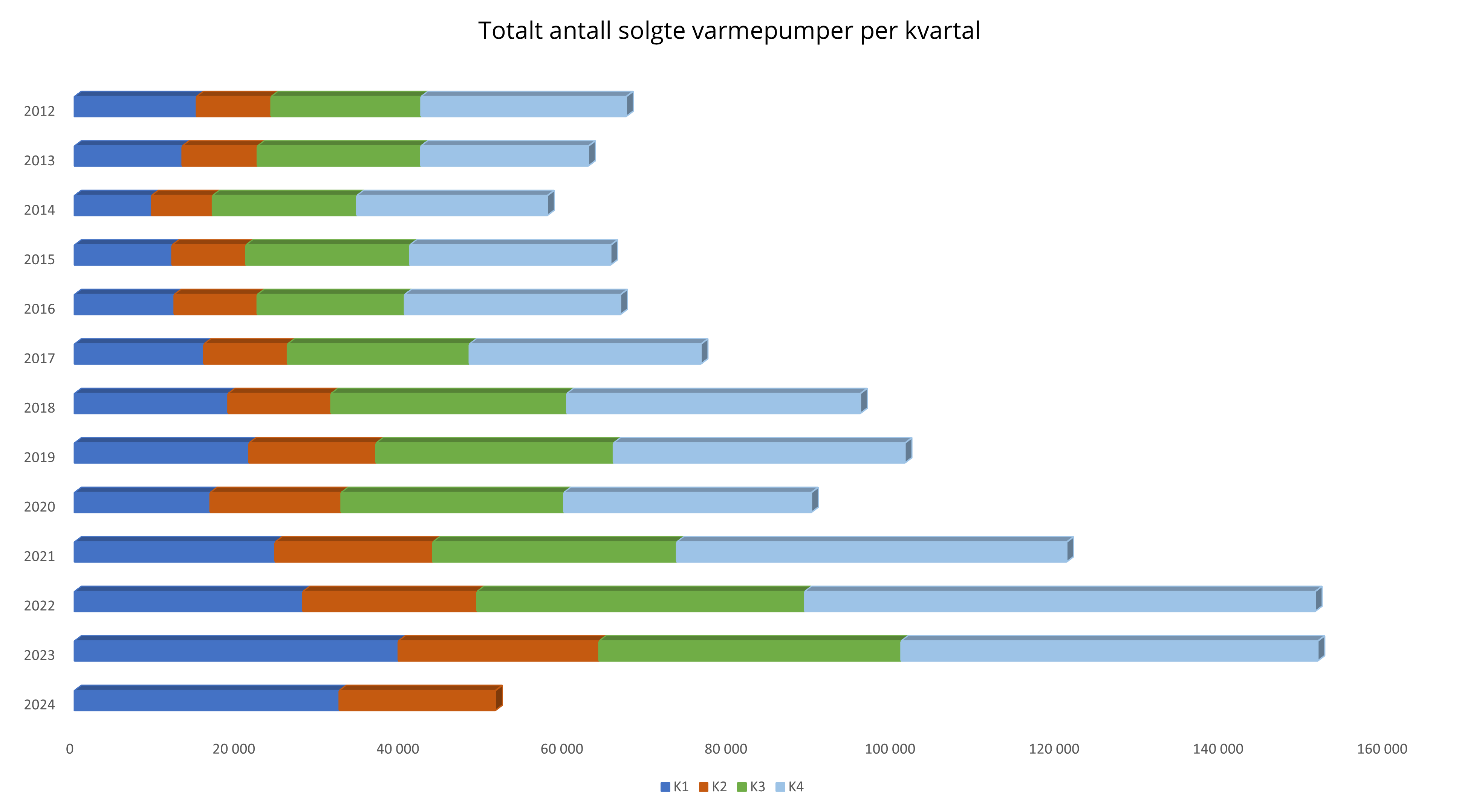 Høye strømpriser bidro til salgsrekorder i 2022 og 2023, og mange i bransjen var derfor forberedt på at salget ville gå noe ned i 2024. Lavere strømpriser, dyrtid, høy boligrente og lav byggeaktivitet har bidratt til lavere etterspørsel etter varmepumper, noe vi også ser i Sverige og Finland.