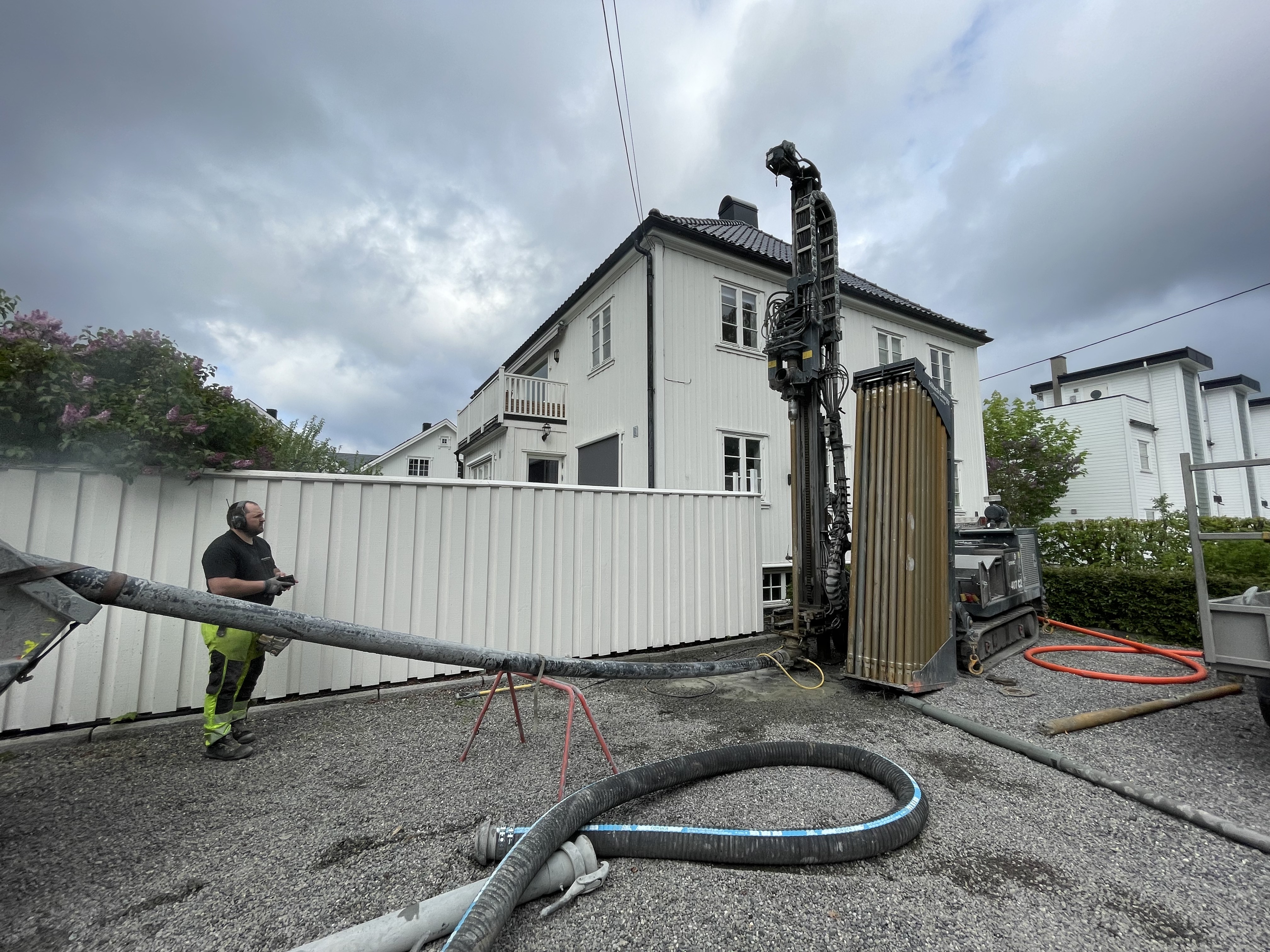 Boring av energibrønn til bergvarme til bolig i Oslo. FOTO: Norsk Varmepumpeforening.