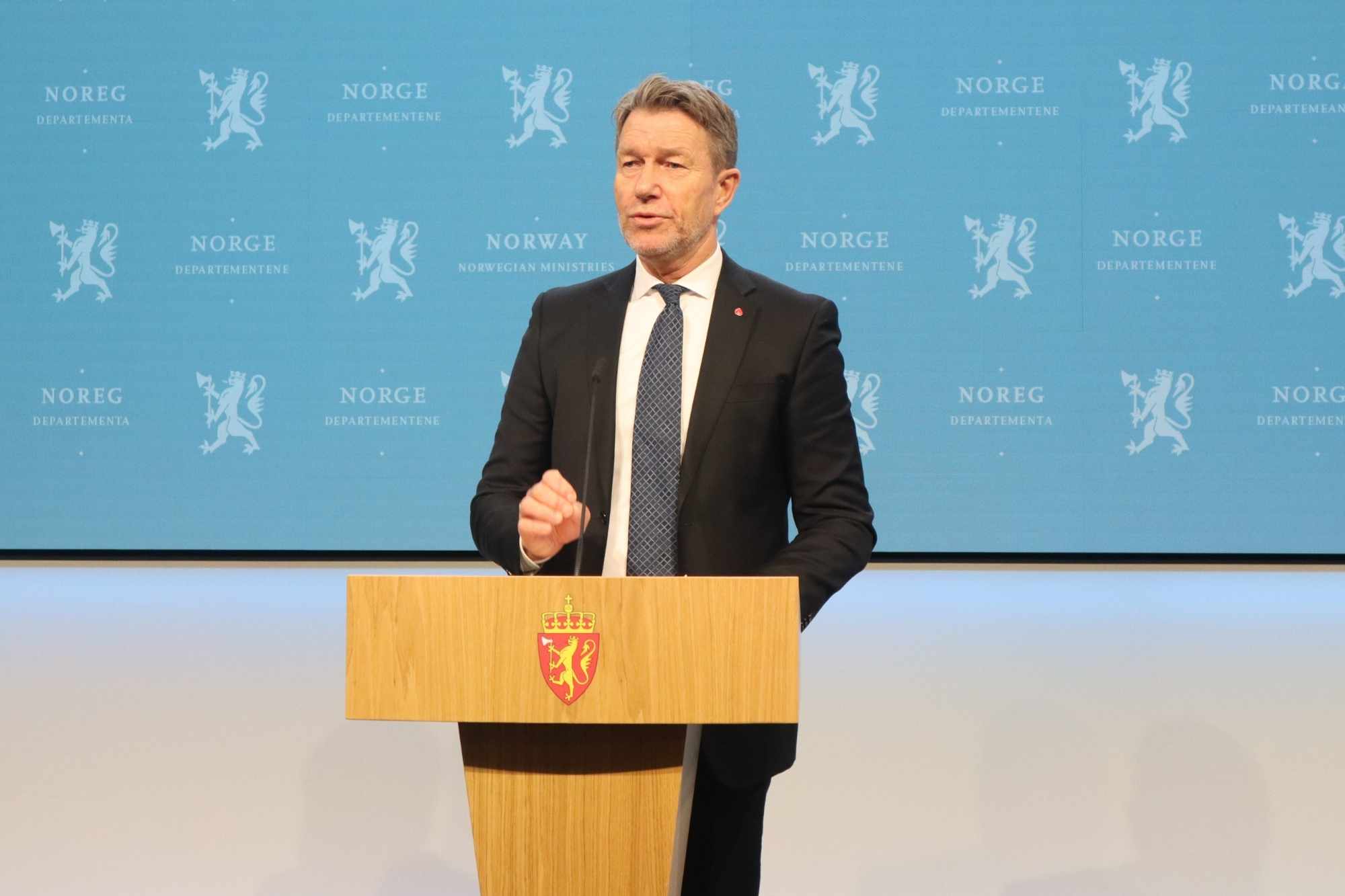 Energiminister Terje Aasland (Ap) ved en tidligere pressekonferanse. FOTO: Margrete Løbben Hanssen OED.