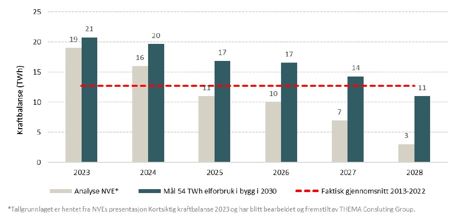 1 Kilde: Thema Consulting Group. Betydningen av energibruk i bygg på kraftbalansen. (2023)